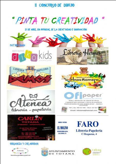"Pinta tu creatividad" es el título del segundo concurso de dibujo organizado por la Asociación Futuras Altas Capacidades con motivo del Día Mundial de la Creatividad e Innovación, que se conmemora el 21 de abril, y que cuenta con la colaboración del Ayuntamiento de Totana.