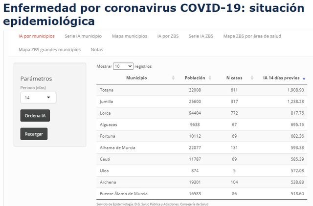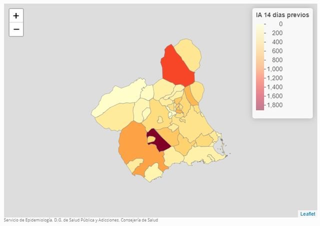 La Consejería de Salud ha ampliado esta semana la información sobre la evolución epidemiológica en la Región con datos pormenorizados sobre la incidencia acumulada.