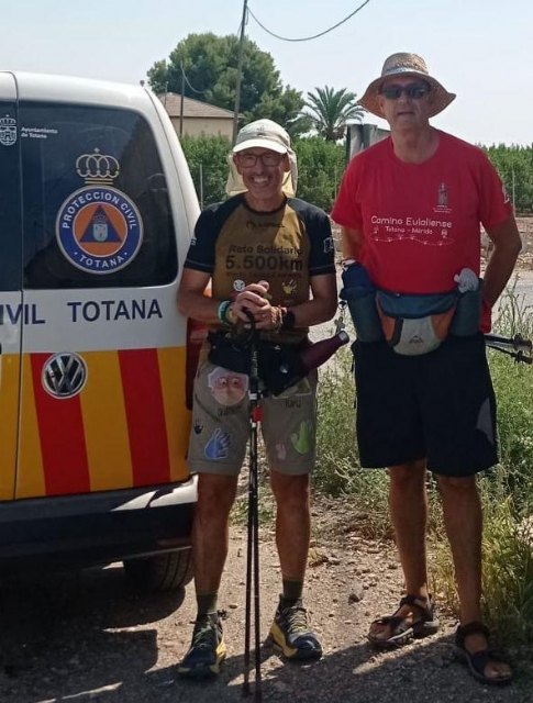 La edil de Deportes ha agradecido a las personas de Totana que lo han acompañado en esta jornada festiva, así como a los voluntarios de la Asociación Camino Eulaliense, Protección Civil de Totana y la empresa "Apartamentos La Bastida", donde se ha alojado continuando con su reto personal.