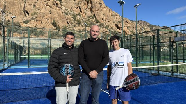 En el acto han estado presentes Fran Puebla, miembro del Club Pádel Alhama, y Aarón García, campeón del mundo de pádel, quienes han acompañado al concejal en la inauguración y presentación de la nueva pista.