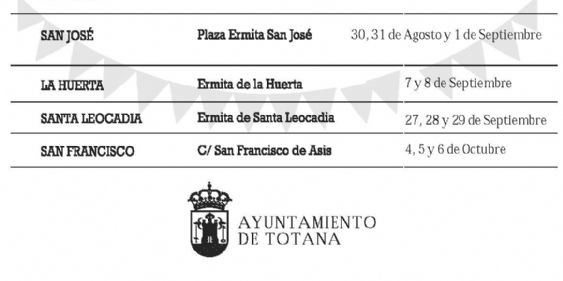 Continúa el calendario de festejos en barrios y pedanías programado para este verano en Totana, y que se prolongará hasta el primer fin de semana de octubre