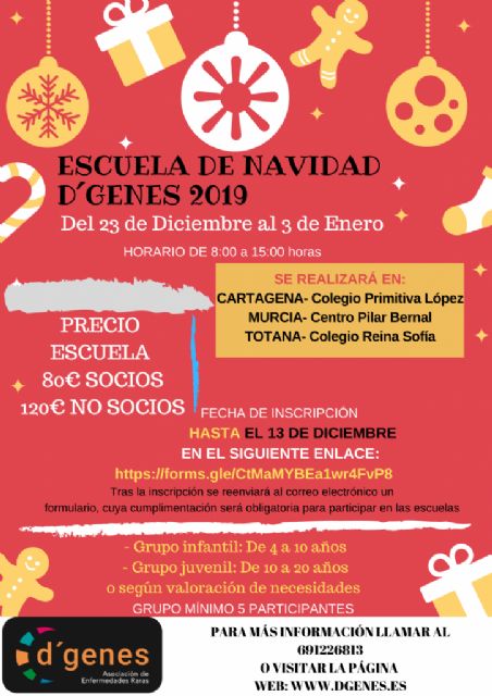 D´Genes oferta una Escuela de Navidad en Totana, Murcia y Cartagena
